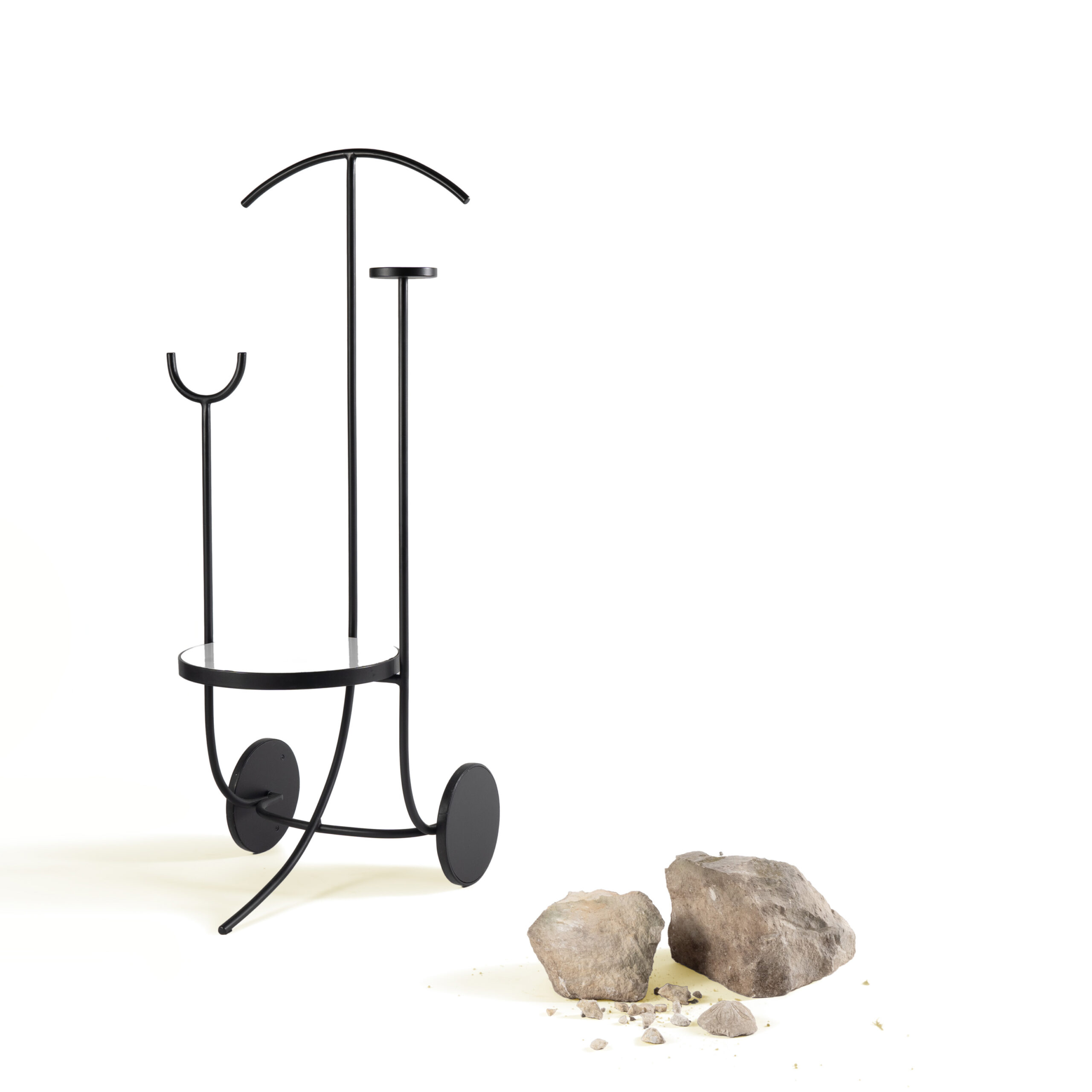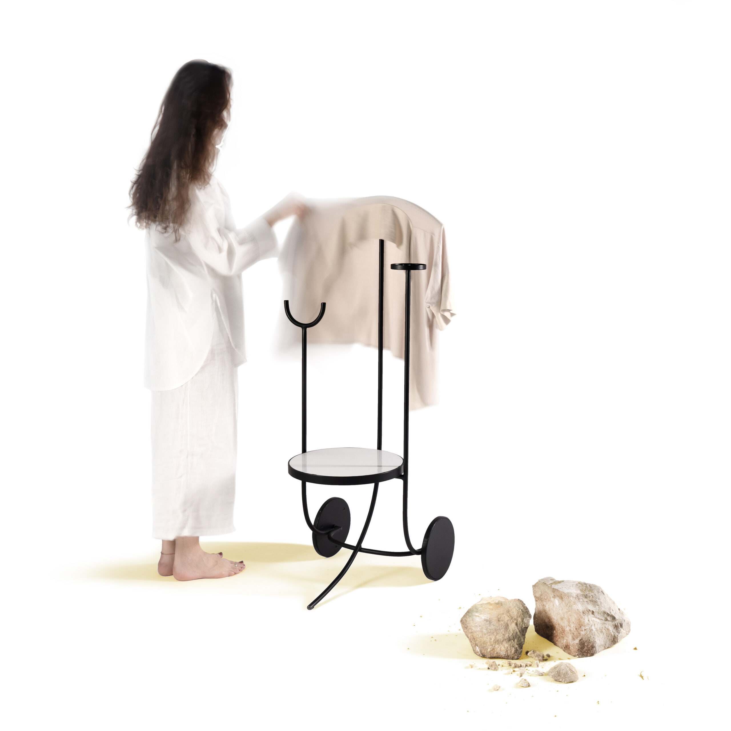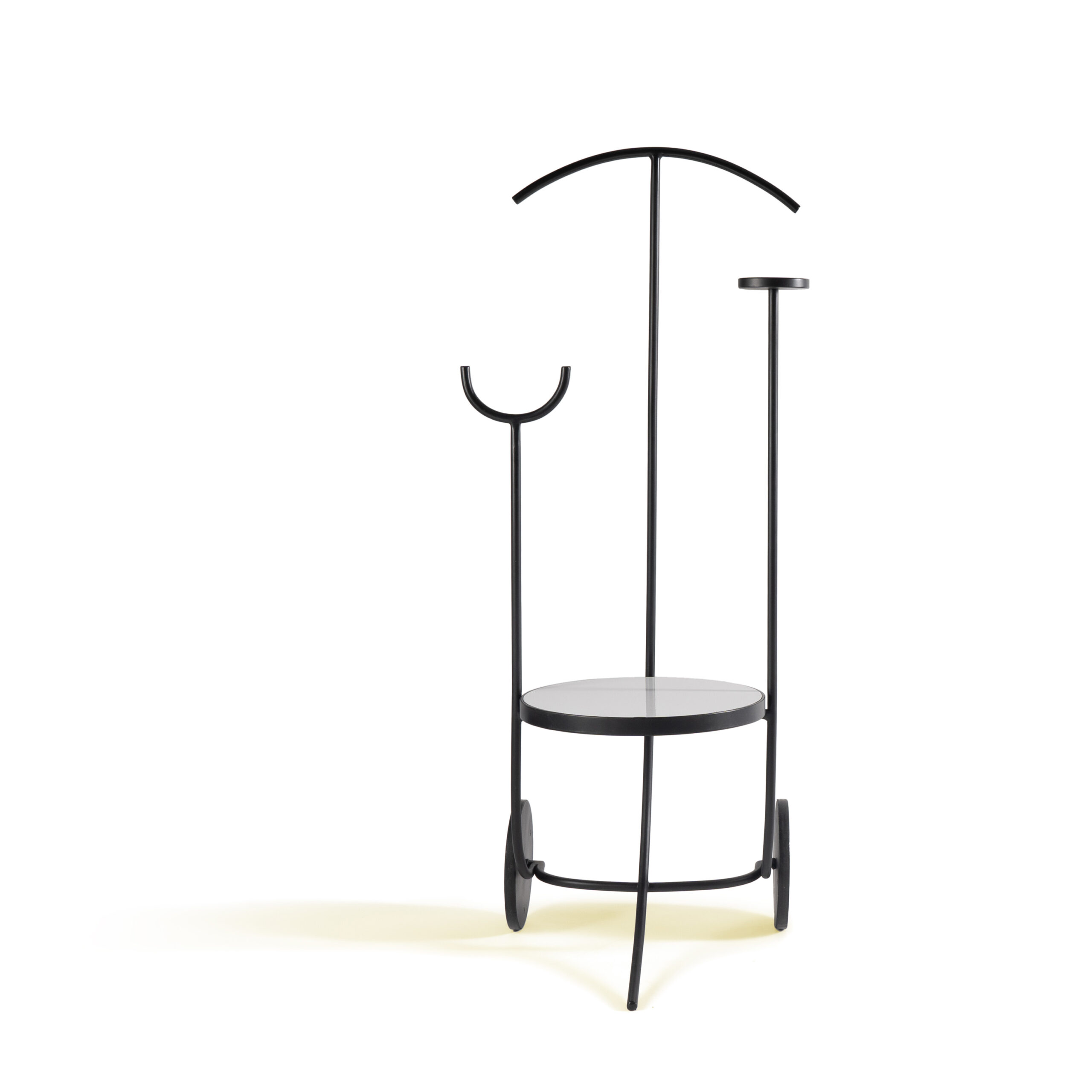 Servo muto che, grazie alle sue ruote, può essere spostato tra i vari ambienti della casa. È dotato di un piano d’appoggio e di piccoli elementi che consentono di riporre abiti e accessori.