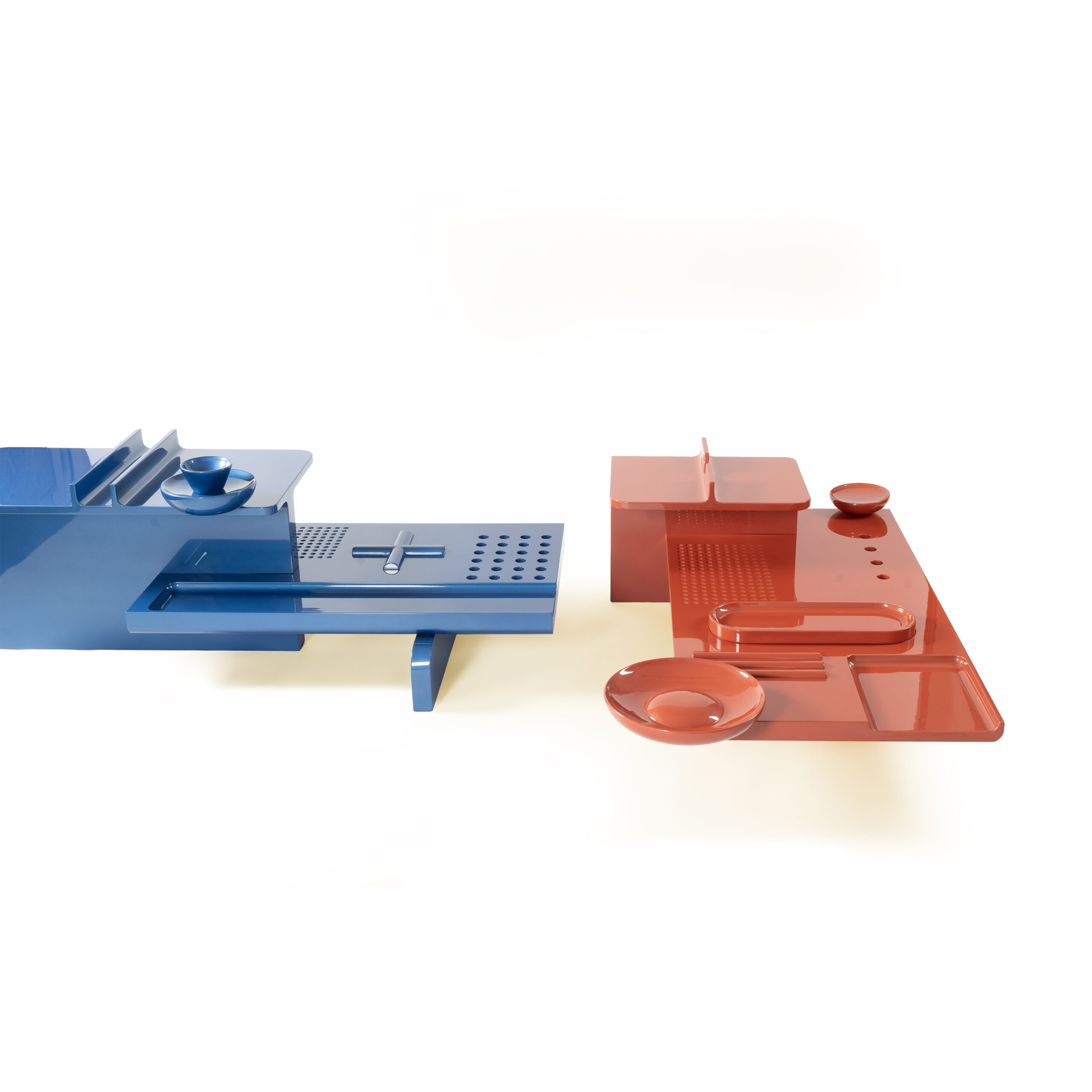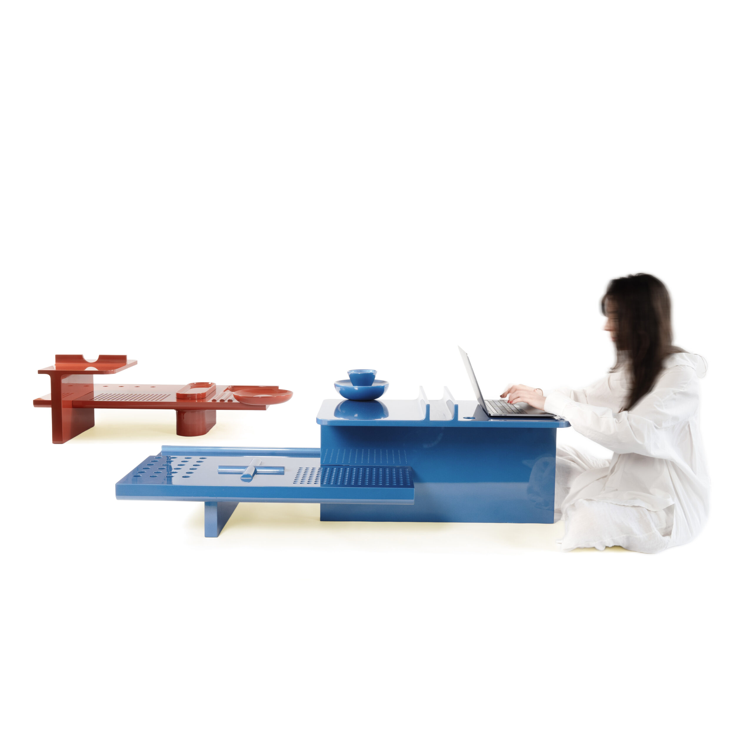 Coffee table enigmatici e scultorei che svelano poco a poco le loro molteplici funzioni: per guardare un film o lavorare al computer, scrivere, disegnare e mangiare. Le loro superfici, tra incavi e smussi, suggeriscono come predisporre gli oggetti.