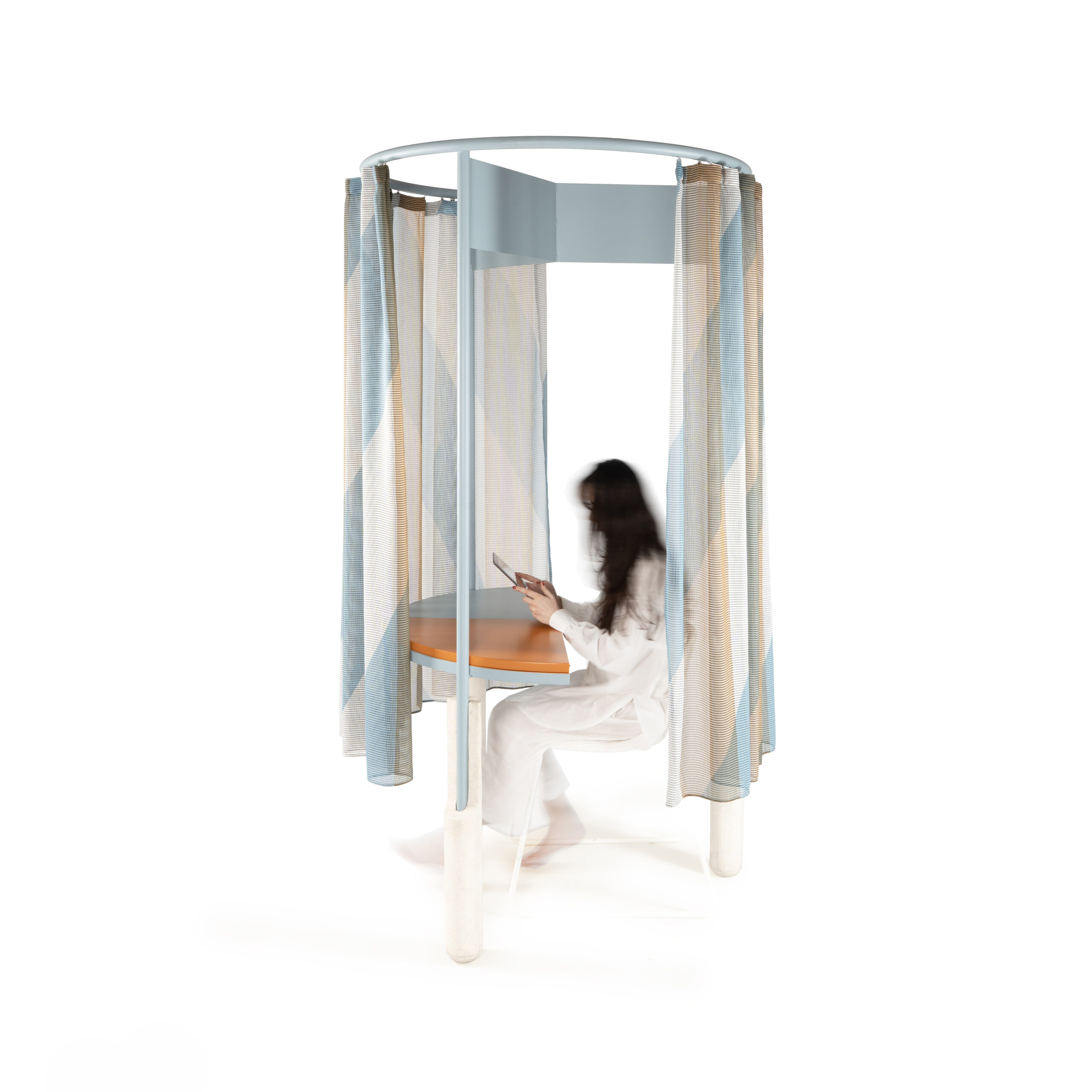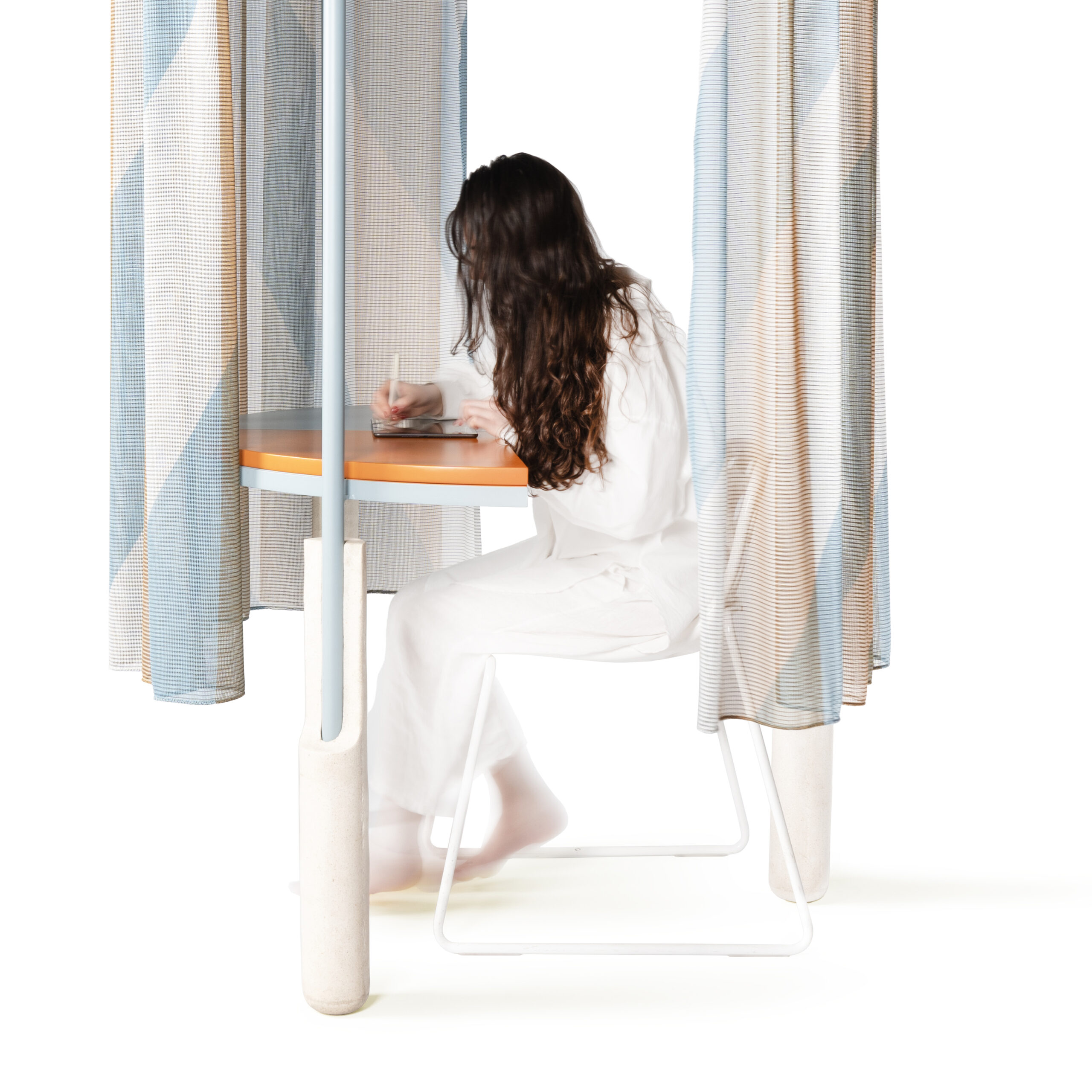 Oggi lo spazio domestico si apre a un nuovo equilibrio tra dimensione intima e nuova socialità a distanza, tra virtualità e realtà tangibile. Le tende del tavolo Trisola diventano uno schermo su cui si proietta lo sguardo di chi ne è avvolto.